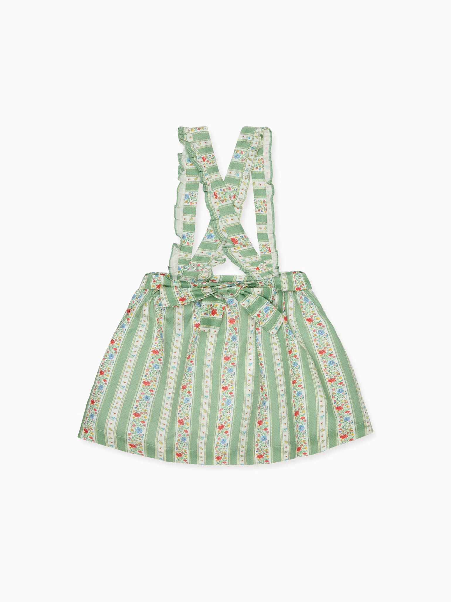 Sage Floral Stripe Reina Girl Pinafore Skirt