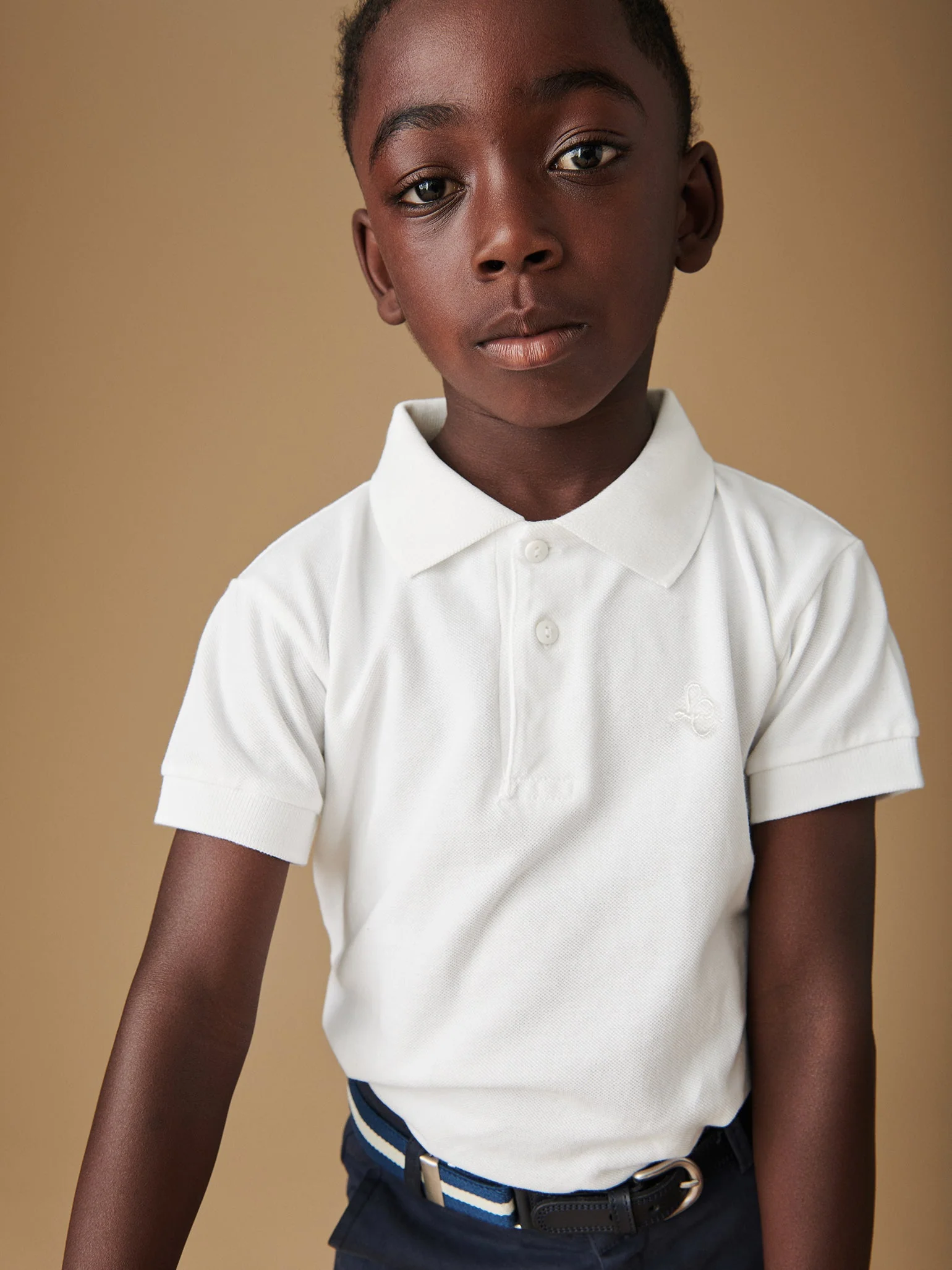A classic polo is one of the most versatile pieces a young man can own, and La Coqueta's debut Camilo Boy Polo Shirt is the perfect fit for styling in both casual and dressy situations. Constructed from breathable pure cotton jersey, it's tailored to a classic fit in bright white, with short sleeves that are folded at the cuff, a traditional stand collar and a button placket, making it a must-have for effortless weekend wear and everyday styling. It's school-friendly and looks as good with chinos as it does with your son's favourite suit, offering a timeless and versatile wardrobe hero.