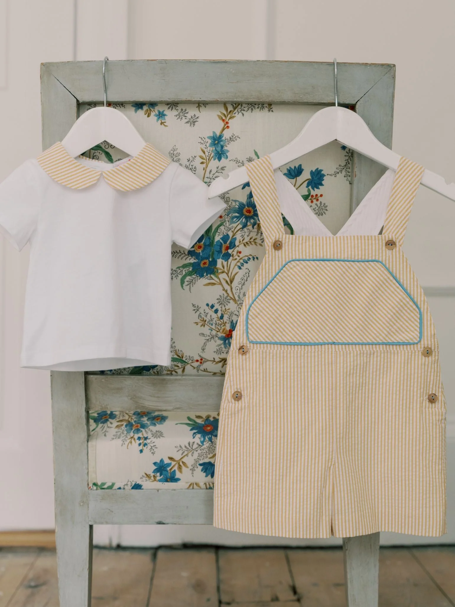 La Coqueta's unisex Ringo Baby Dungarees are perfect for building your baby's growing nursery wardrobe, offering endless wear throughout the season. Crafted from luxuriously soft cotton, they have an exceptionally gentle handle that is kind to even the most delicate skin. Designed with a relaxed silhouette and long legs, these dungarees feature a practical patch pocket at the front and signature wooden buttons at the straps and sides for fuss-free changing. Decorated with a charming yellow stripe pattern and light blue piping, they capture an effortlessly cheerful look, making them the ultimate summer one-piece for balmy days. Wear them layered over one of La Coqueta's soft jersey baby body vests or a crisp cotton shirt, or on their own during warmer weather for an easy, comfortable outfit.